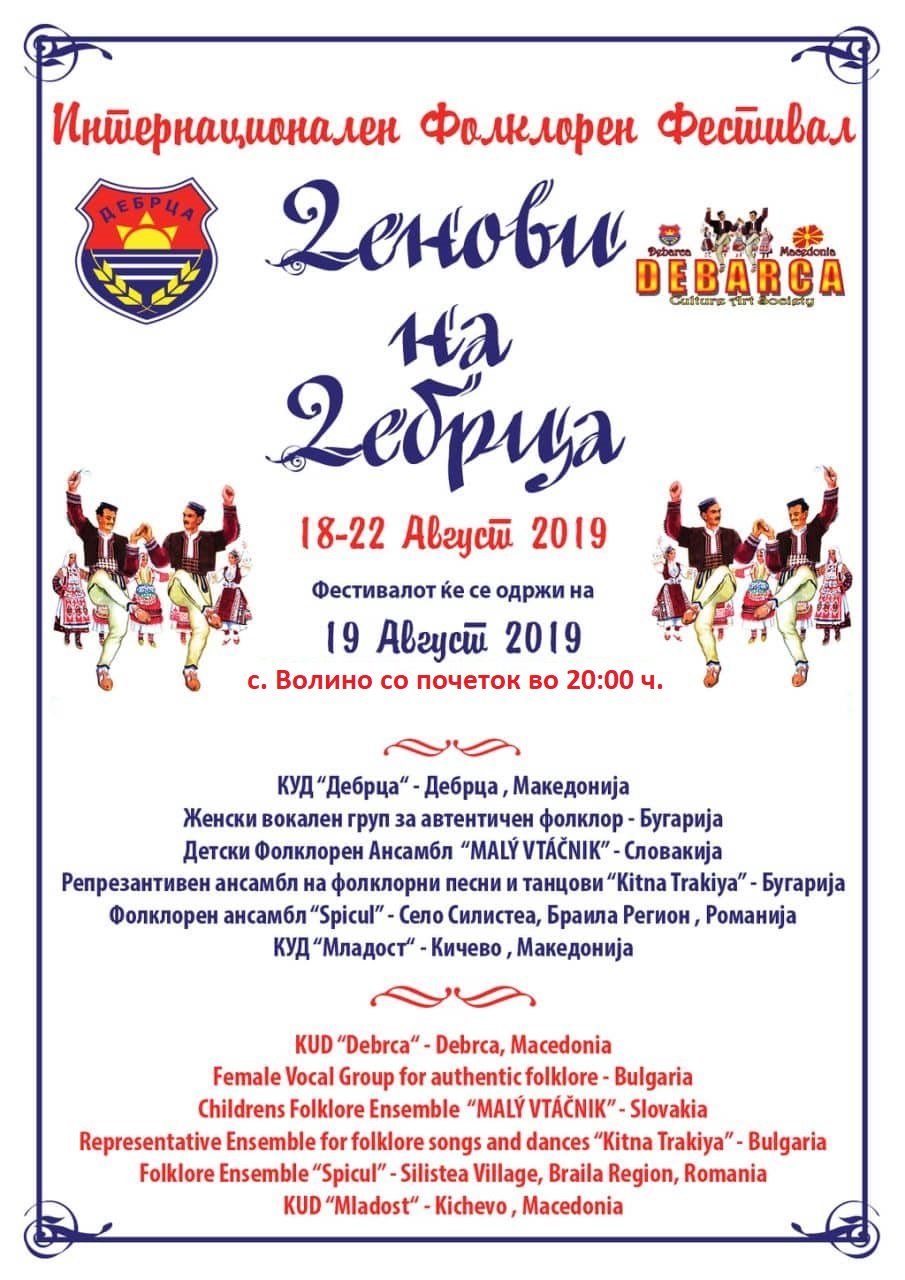 Вечерва во центарот на село Волино се одржа 8-иот Интернационален фолклорен фестивал “Денови на Дебрца 2019”.