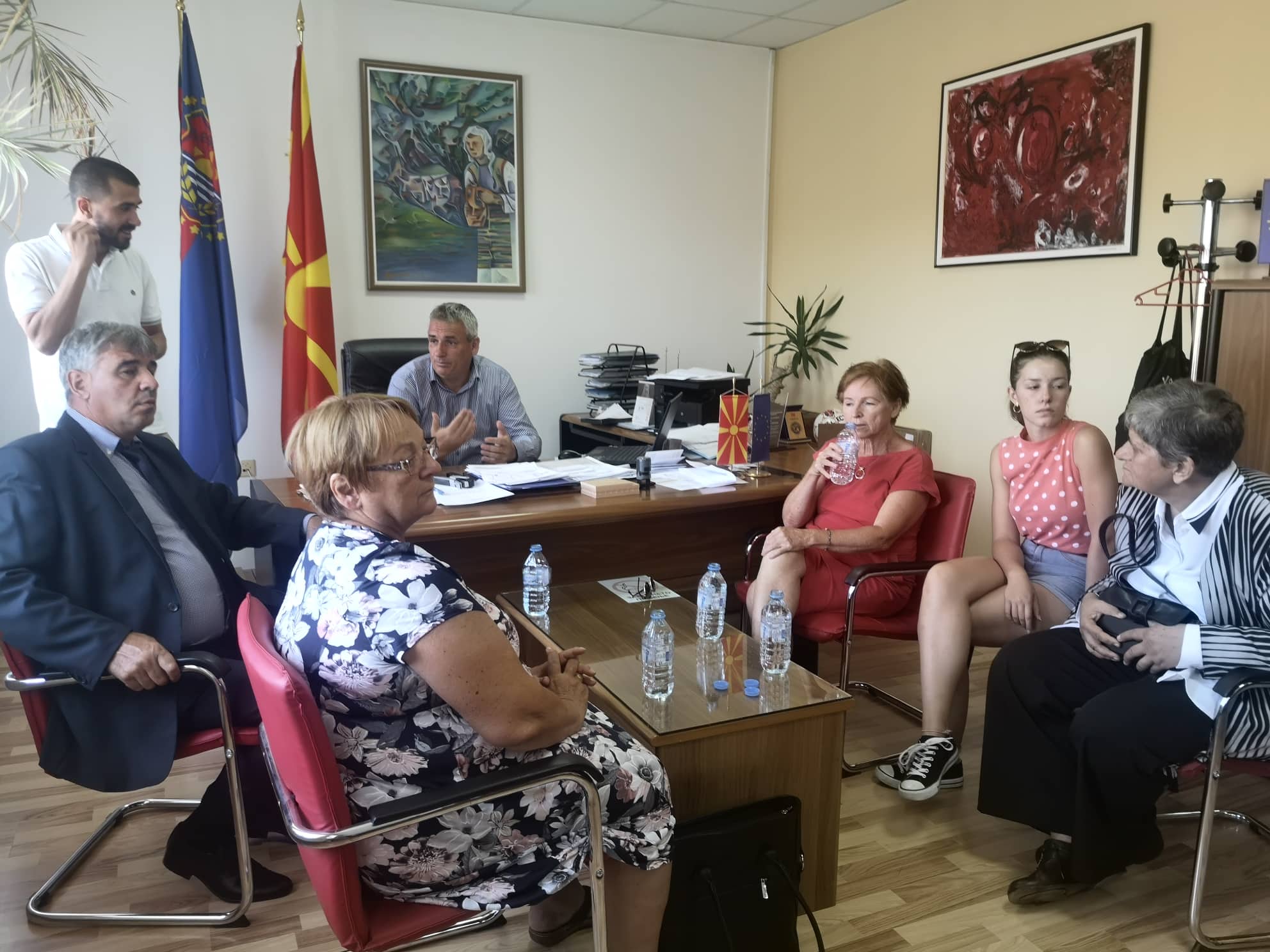 Претпладнето градоначалникот во кабинетот ги прими претставниците на фолклорните ансамбли од Словачка, Романија и Бугарија и ги запознав со личната карта на општина Дебрца.