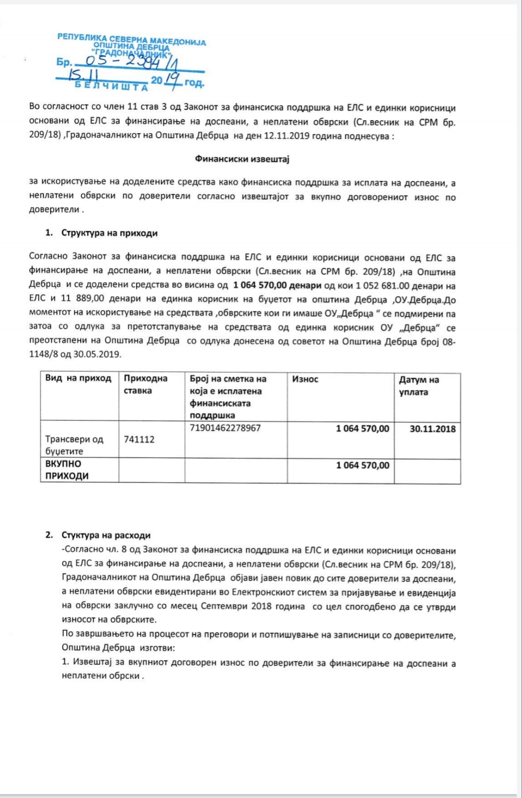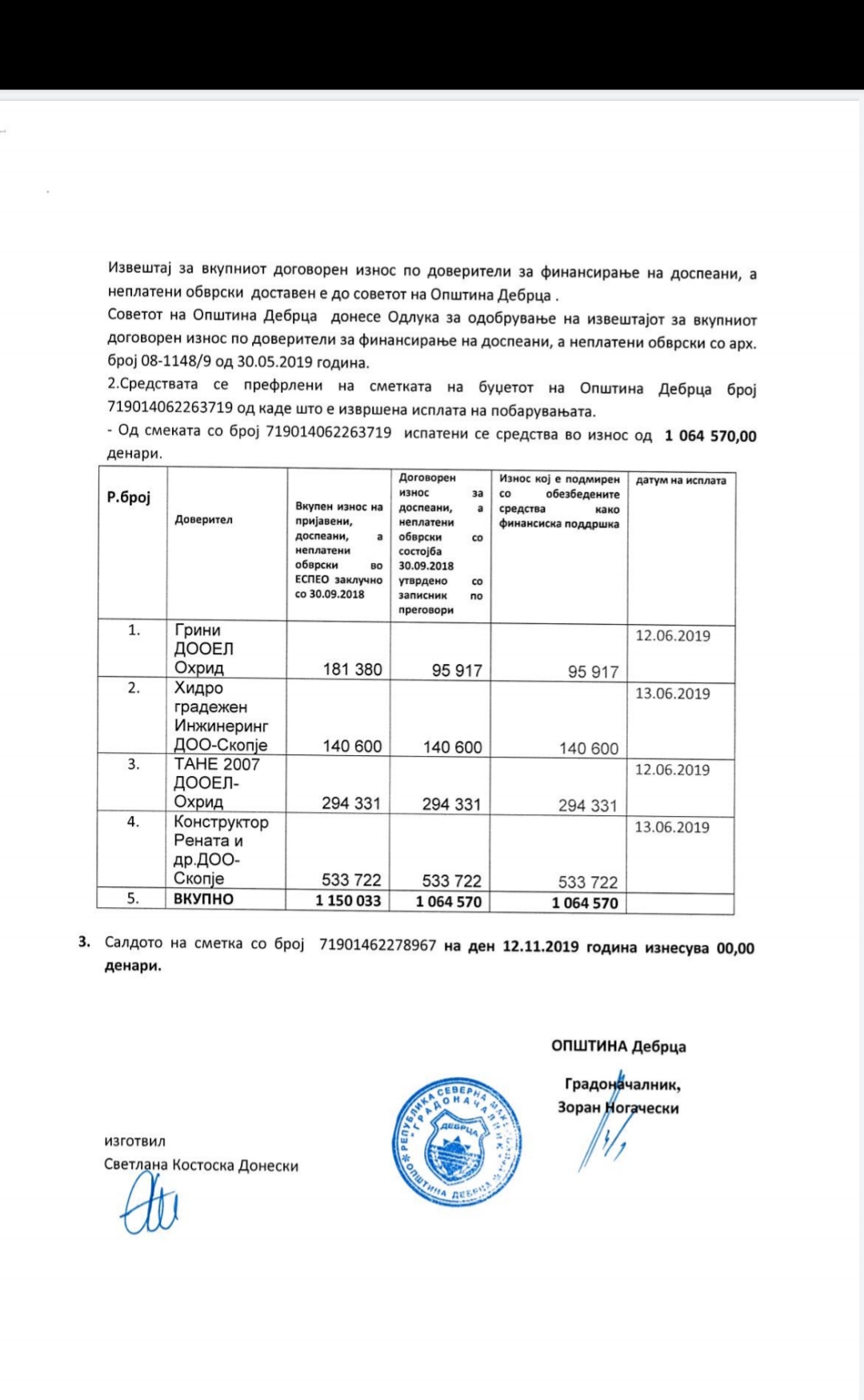 Вкупната вредност на работите изнесуваа 3.075.504 денари, а средствата, во износ од 2.500.000 денари се обезбедени од Бирото за регионален развој, програма за рамномерен регионален развој за 2019 година, по поднесена апликација од Центарот за развој на Југозападниот плански регион, а преостанатиот износ ќе се обезбеди од општинскиот буџет.