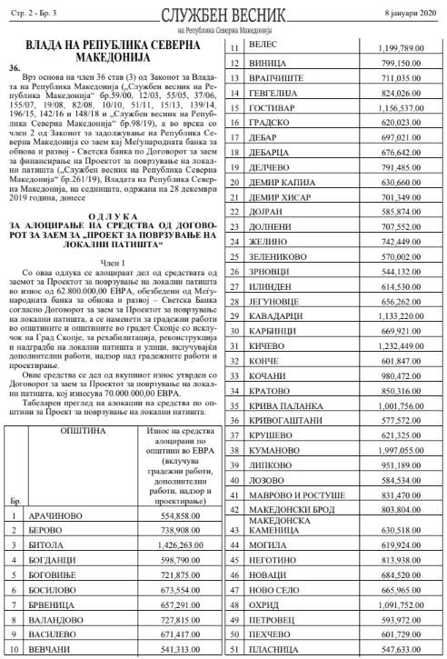 „Средствата се обезбедени од Меѓународната банка за обнова и развој – Светска Банка, а ќе се користат за рехабилитација, реконструкција и надградба на локални патишта и улици, односно за подобрување на општинската патна инфраструктура. Ние веќе имаме аплицирано со три проект до Министерството за транспорт и врски. Тој е препратен на одобрување кај Светска банка бидејќи проектот е со заем од Светска банка. Се работи за реконструкција на патниот правец од Белчиша до Злести во должина од оклку 3 км и изградба на една заобиколница околу селото Злести. Овие средства се добредојдени за општина Дебрца вели градоначалникот Зоран Ногачески..